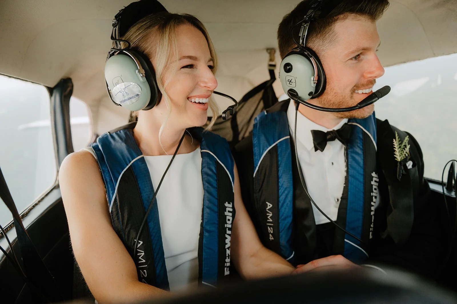 And then, (probably one of the most unforgettable moments of my entire photography career) they surprised everyone by going up in a seaplane!! And guess what? I got to go with them!! We did some portraits by the docked plane first (SO good), and then we were up in the sky, flying over the lakes. It felt surreal and so adventurous to be able to document them experiencing that on their wedding day!