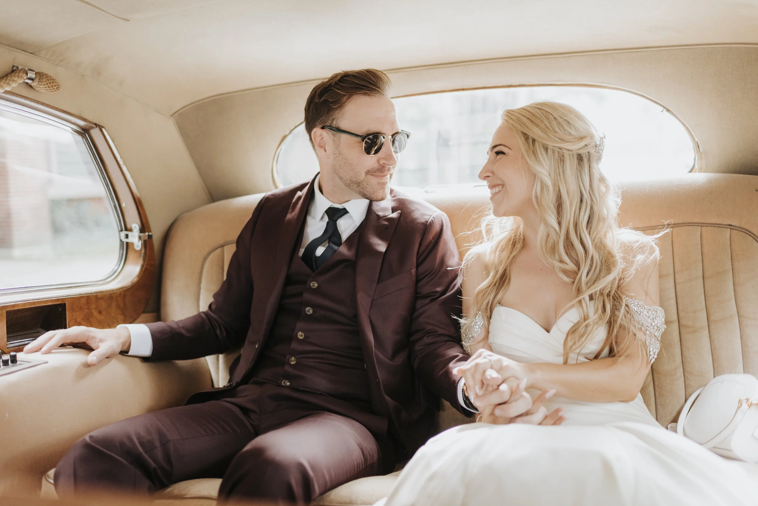 On the way to The Beaches, we were having the time of our lives cruising around in a vintage Rolls Royce! At one point they said that we were going to pass by the place that they first met on Queen Street, and that it was called Gabby's, and I'm like, “Oh my gosh, we need to pull over and stop there for a photo!”. So I got a photo of them in front of Gabby's where they first met years ago!