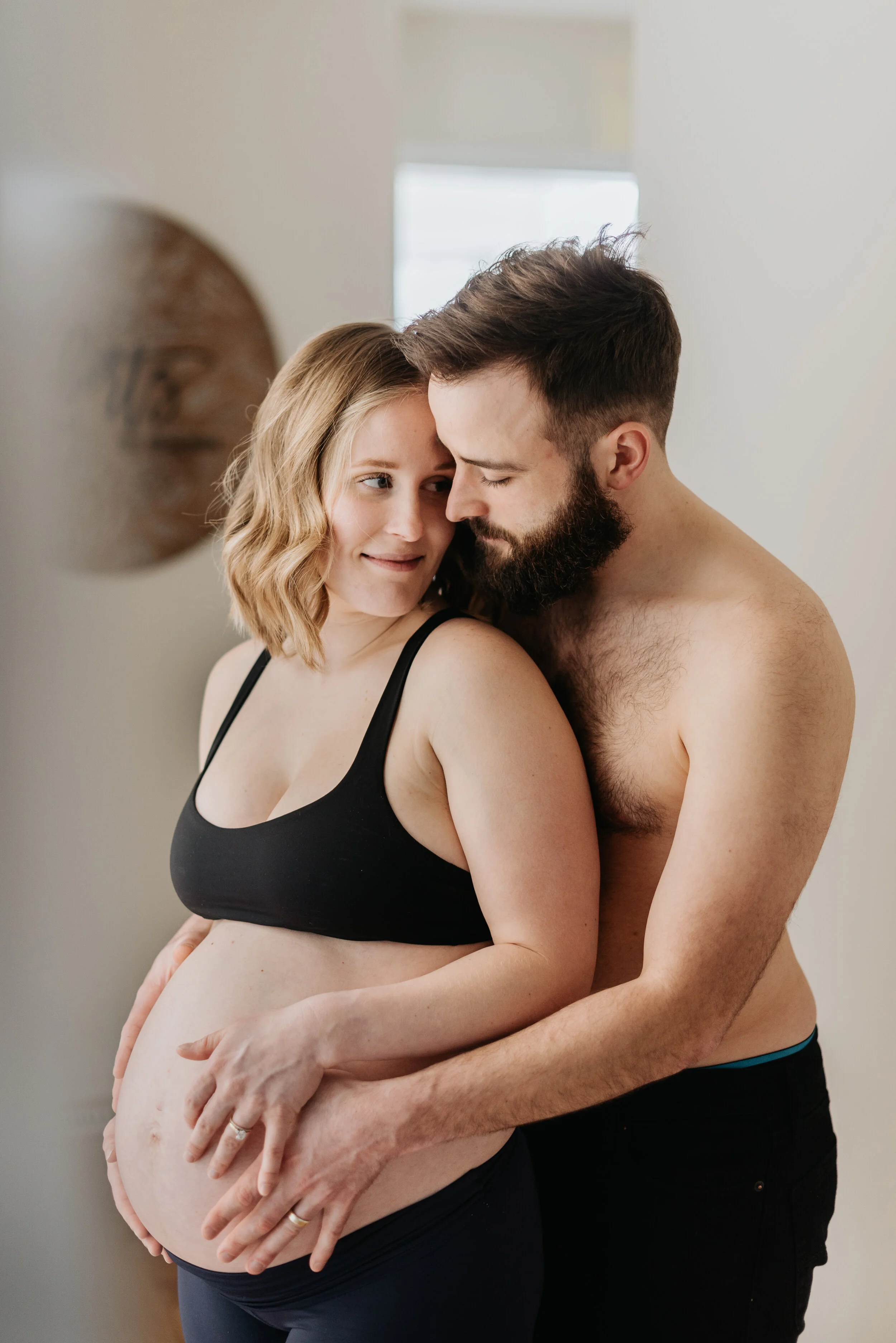 I would approach the session with a mixture of an authentic lifestyle approach as well as giving some more direction so that you two have some meaningful intimate portraits of you two with baby bump!